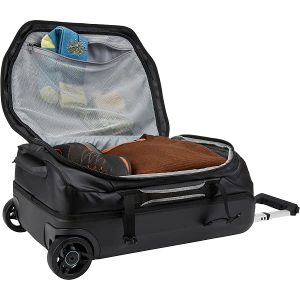 Spécialement conçu pour l’aventure, le CHAMS CARRY ON WHEELED DUFFEL de chez Thule est un sac fourre-tout à roulettes qui forme une valise résistante aux intempéries lors des petites escapades et le week-end.